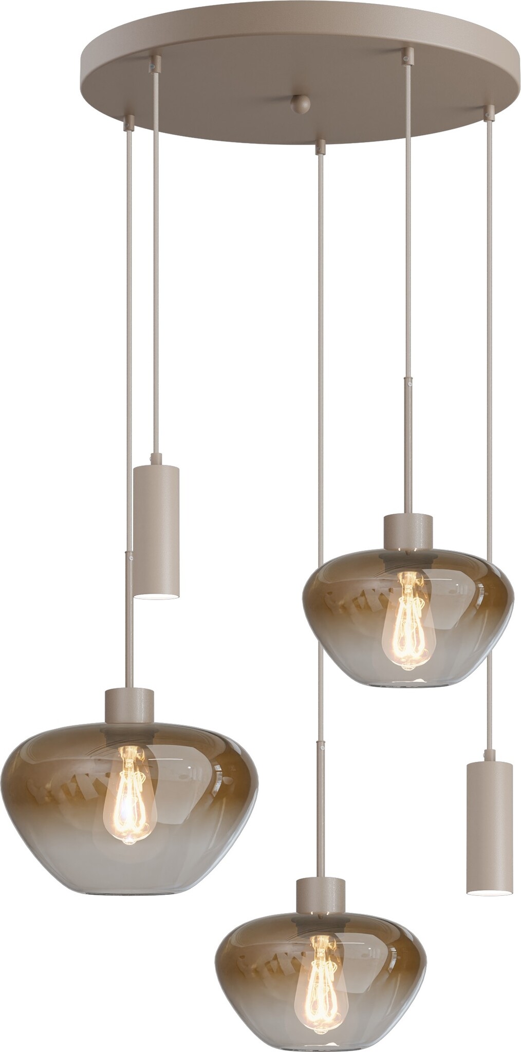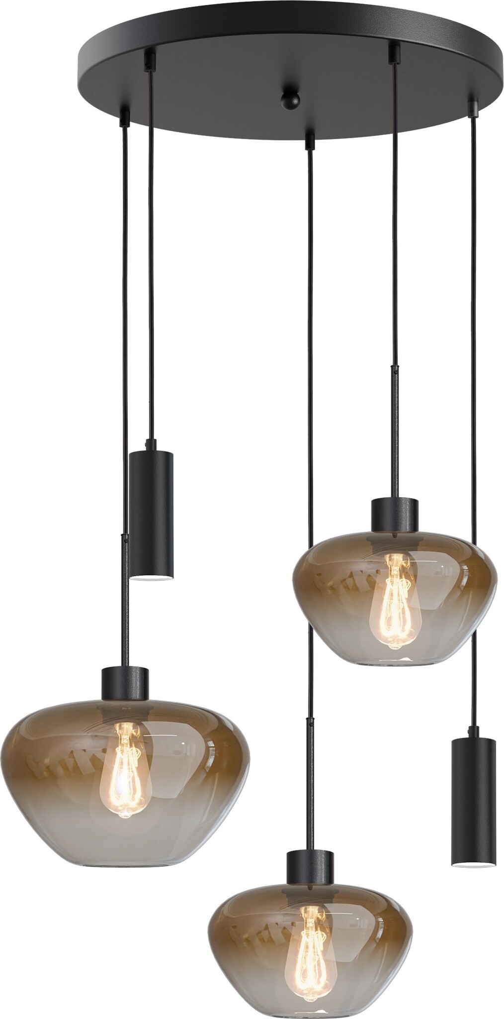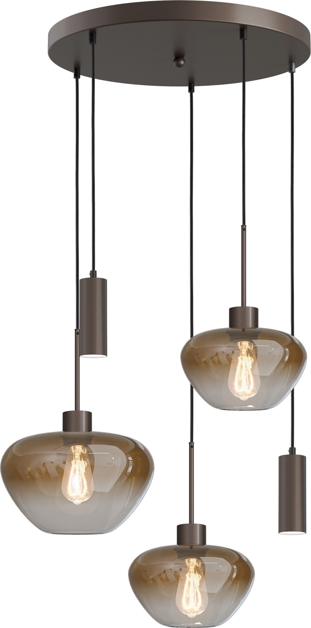 Zeer mooie kwaliteit zwarte, terra of cacoa kleur plafondlamp Genua met 3 glazen 2 koker. Lees meer