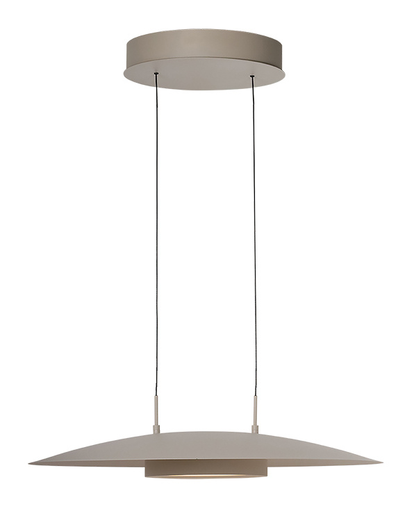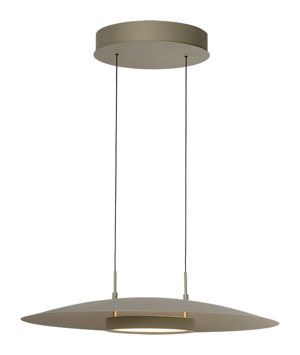 Mooie ronde hanglamp Lastra met dim to warm. Verkrijgbaar in creme en olijfgroen. Geeft veel licht 2 x 13 watt en heeft een 60 cm doorsnede.