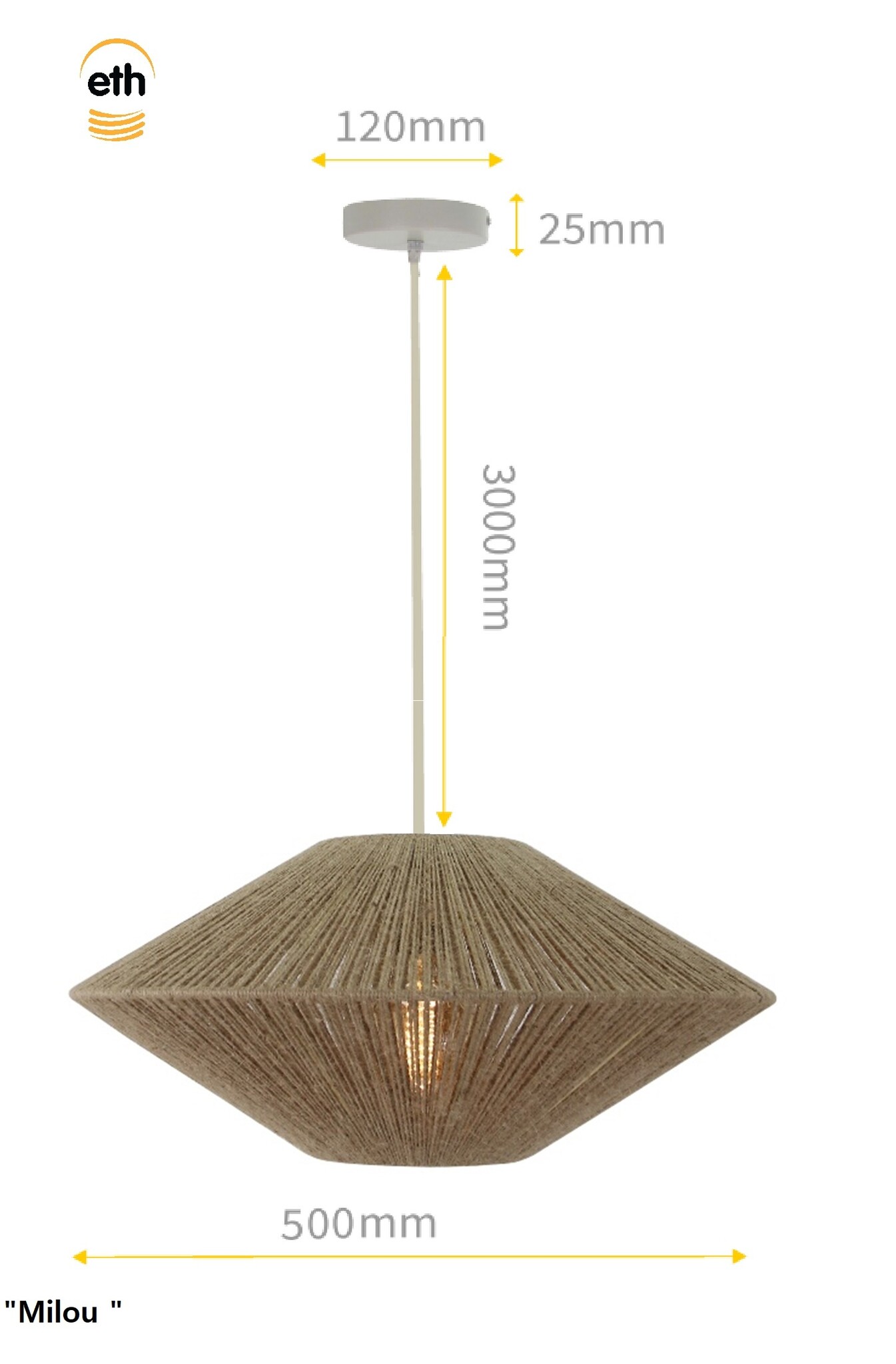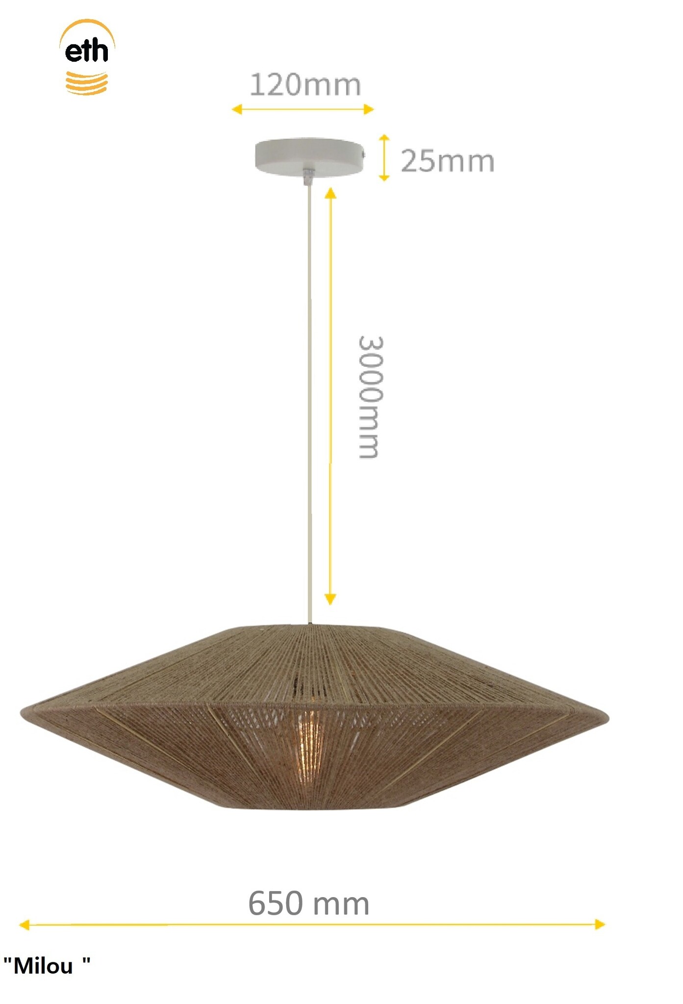 Hanglamp Milou gemaakt van Touw in kleur zand en pendel-plafondplaat die tevens ook zandkleur zijn.
