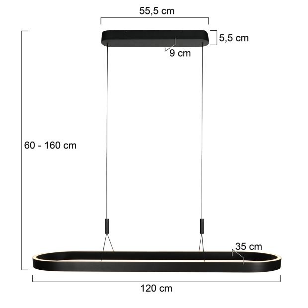 De hanglamp Mykty ovaal met een verfijnde matzwarte afwerking en biedt zowel boven- als onder-verlichting voor een perfect uitgebalanceerd lichtbeeld. Dankzij de Cable Lift-functie kunt u de lamp eenvoudig in hoogte aanpassen tussen 60 cm en ruim 160 cm, ideaal voor verschillende interieurs en plafondhoogtes.