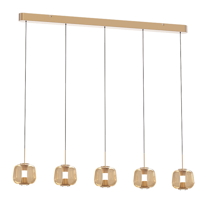 De Rosa hanglamp heeft 3 of 5 lichtpunten, amberkleurig glas en een katrolsysteem voor eenvoudige hoogteverstelling. Lees meer