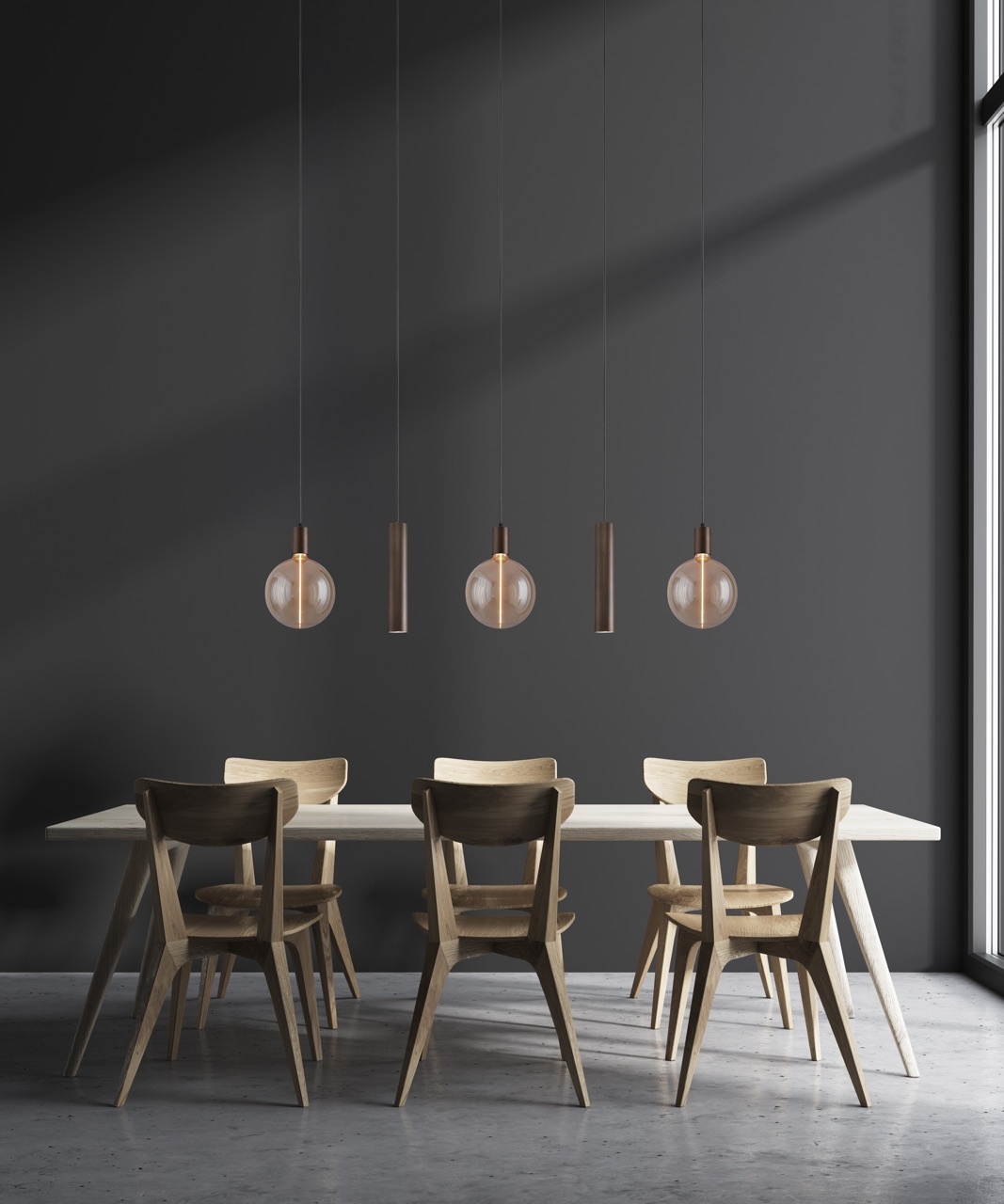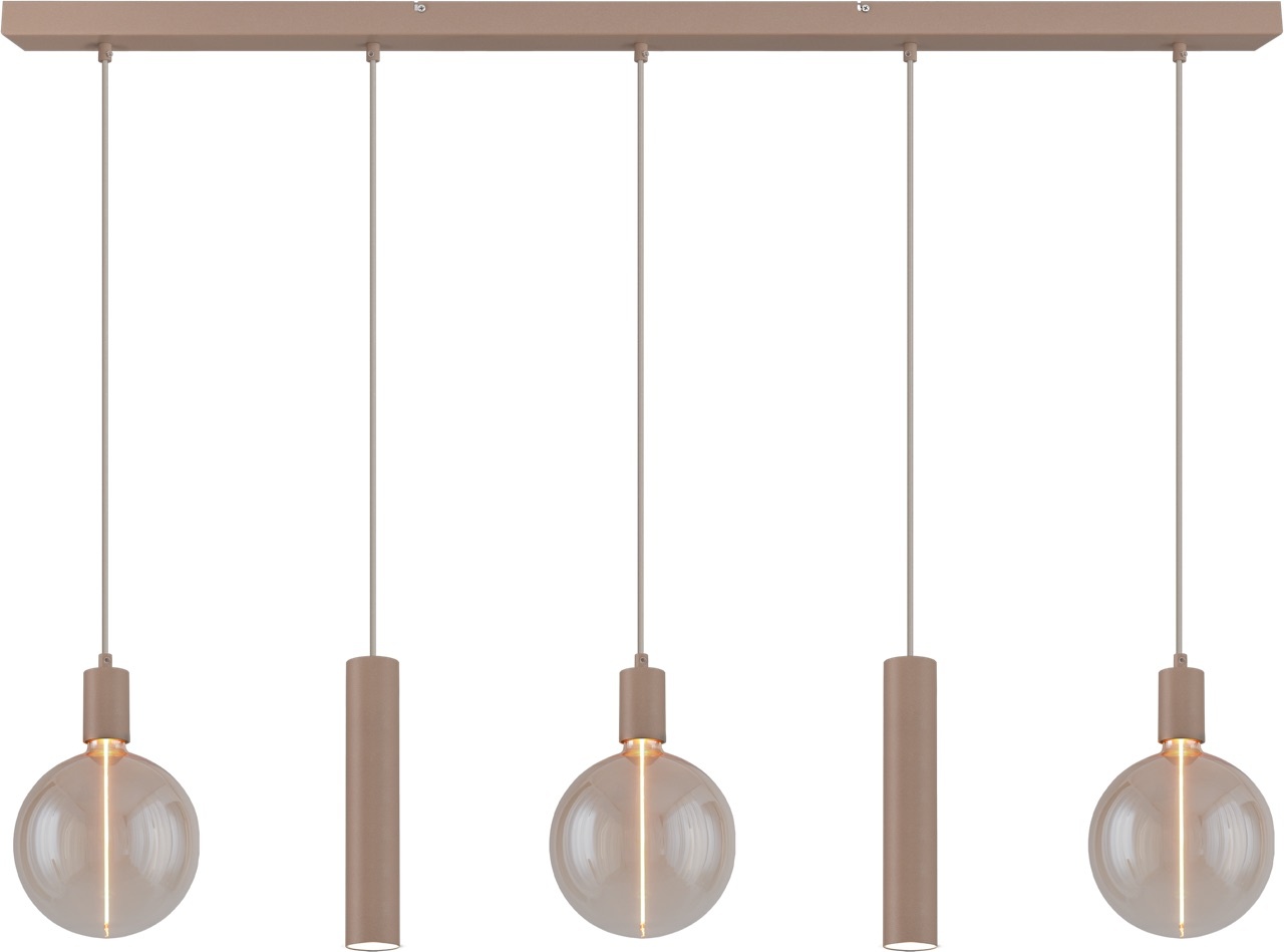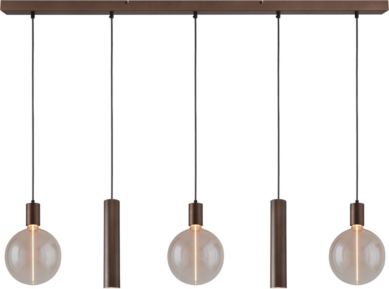 Hanglamp Tence 5 lichts, met 3 lampen( incl. Led) en 2 kokers Run ( excl. Led) in de kleur zwart, terra of cacao.. Lees meer
