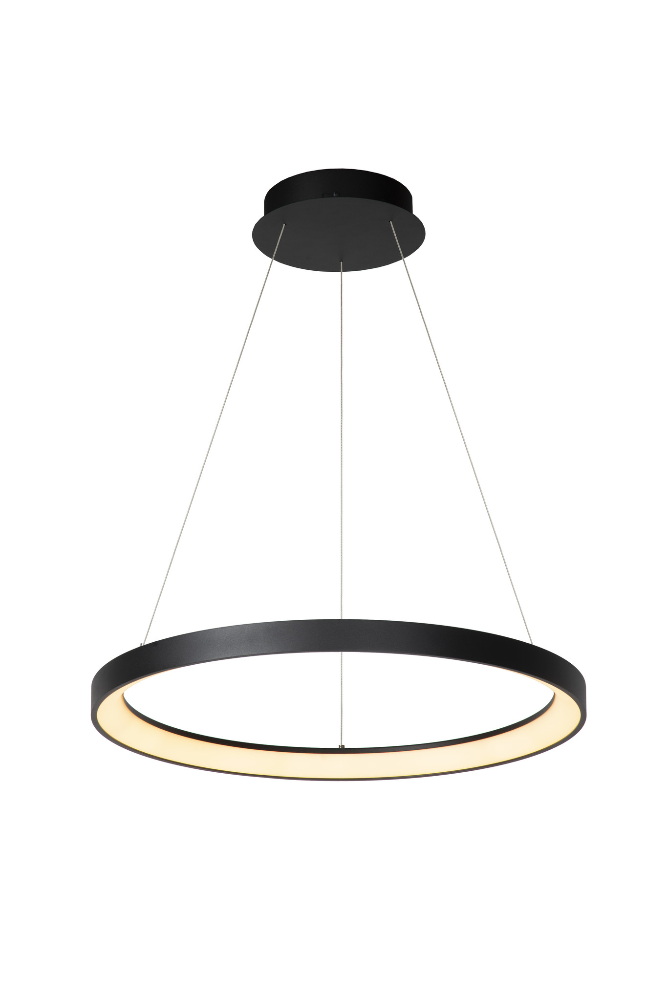 Deze Vidal hanglamp heeft een modern design door de ronde vorm. De hanglamp Vidal geeft veel lichtopbrengst met 50 watt, in een warme kleur Led. Diameter 58 cm. In hoogte verstelbaar en via een externe dimmer is deze ook dimbaar. Materiaal is aluminium mat/goud of zwart met acrylic waarachter het led is verwerkt.