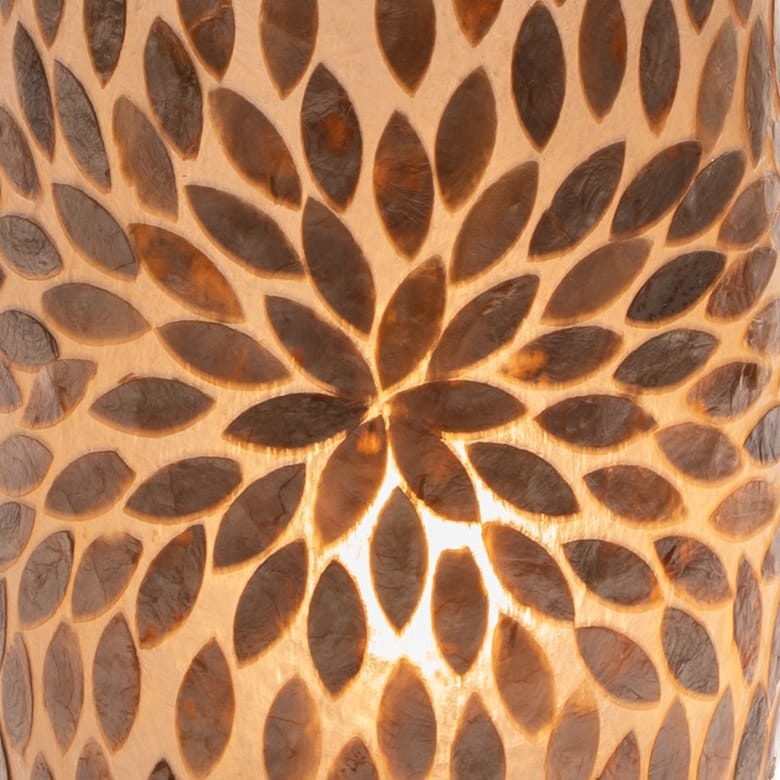 Cilinder lampenkap Flower Gold van schelpen met een diameter van 55 cm. In winkel te zien. Lees meer
