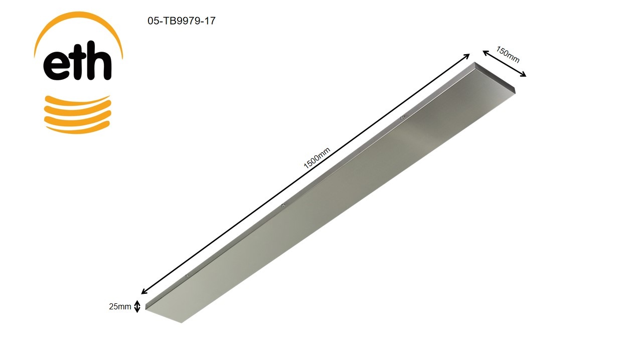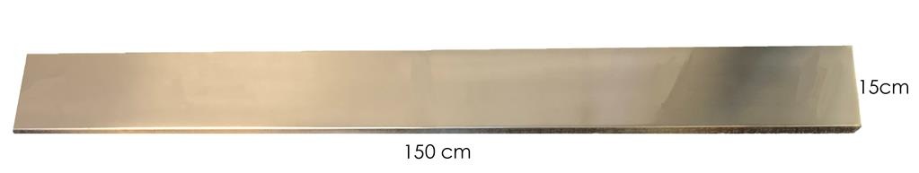 Losse plafondbalk met een lengte van 150 cm x 15 cm breed en 2,5 cm hoog. In het zwart (gepoederd coat)  of rvs verkrijgbaar. De balk is zonder gaten. ( Compleet met montagebeugel om op te hangen 105 cm)
