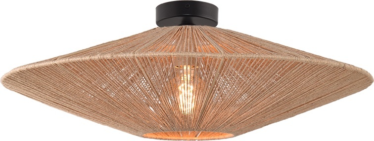 Mooie leuke plafondlamp Bicono aan een zwarte ronde plafondplaatje van 11 cm. Hoogte is 21 cm. Dit is gemakt van touw bol met een diameter van 35, 50m of 65 cm. Geschikt voor Led lamp met een E27 fitting.