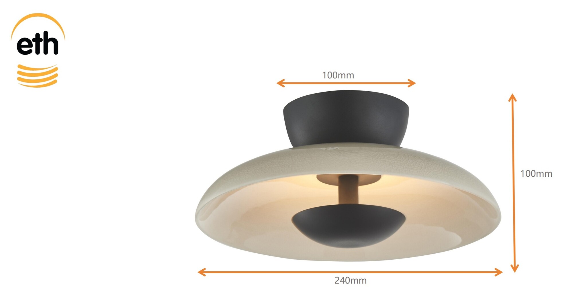 Een ronde keramische schaal met zwart metaal is de plafondamp Bonny. De keramieken is gecraquleerd in marmerlook geeft een verfijnde en luxueuze uitstraling. De diameter is 24 cm.
