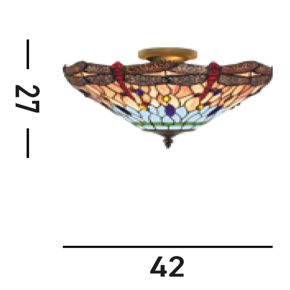 Plafondlamp Tiffany Dragonfly met een diameter van 42 cm. Lees meer