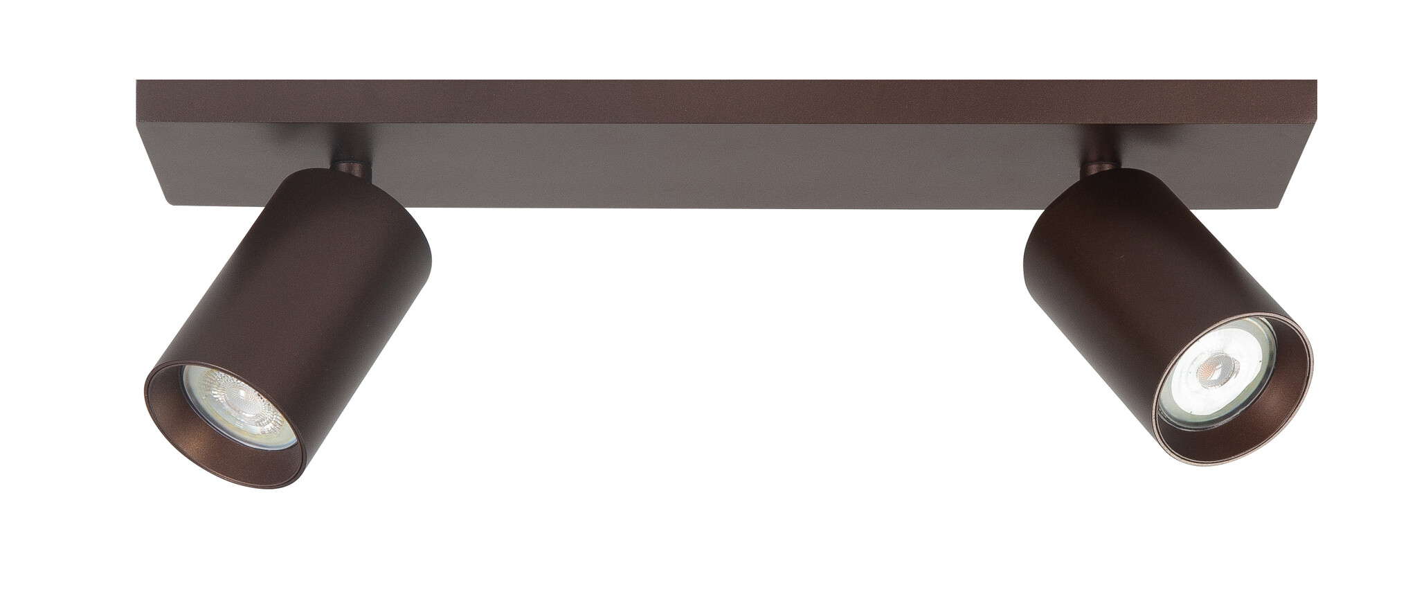 Mooie spot Mila 2 lichts op een balk in koffie of cremet. Draaibaar en kantelbaar. Geschikt voor Led lampen met een GU10 fitting. Lees meer