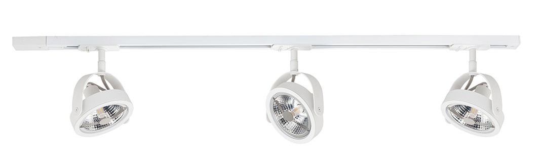 Complete rail compleet met lengte 1 meter incl. 3 industriële spots AR111 EXCL. Led G9. Verkrijgbaar in  wit. De spots zijn schuifbaar in de rail. NOG 1 STUK!!