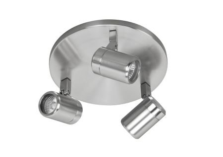 Rvs 3 lichts spot op een ronde plaat. Spots zijn draaibaar en kantelbaar. De spot is exclusief led lampen . Ook geschikt voor badkamer. Lees meer