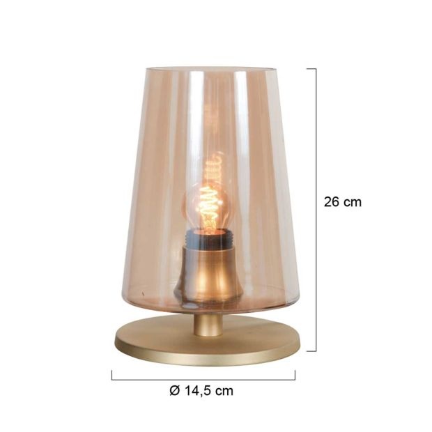Tafellamp Ancilla zwart met smoke glas, of messing met amber glas, totale hoogte 26 cm. Niet dimbaar. Lees meer