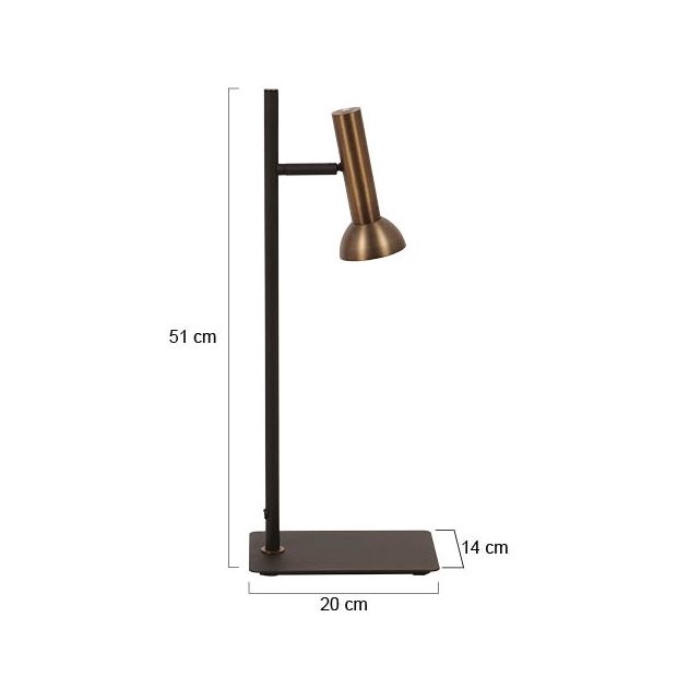 De Kora is een moderne industriële tafellamp/ bureaulamp. Deze van staal gemaakte lamp komt uit de Mexlite Led serie, en geeft zeer veel lichtopbrengst. De zwart met brons kopje is, beschikt over een Led fitting en wordt inclusief lichtbron van 4,9 watt meegeleverd. Kantelbaar, zodat het licht valt waar u het nodig heeft. De totale hoogte is 51 centimeter.