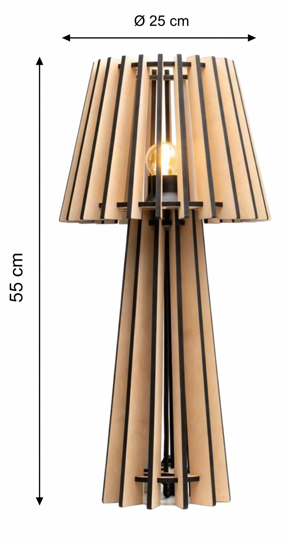 Houten tafellamp The mIni van 55 cm hoog. in naturel en zwart verkrijgbaar. Lees meer