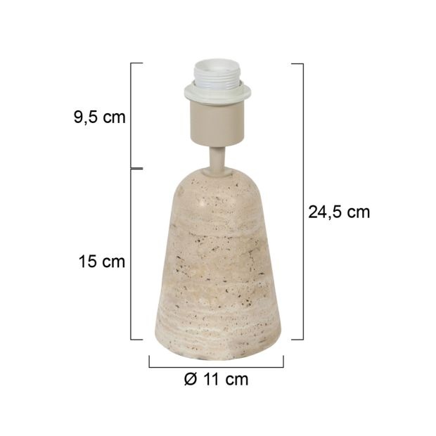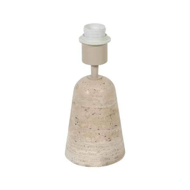 De Travino tafellamp is een stijlvolle en compacte lampenvoet, volledig vervaardigd uit travertin – een kalksteensoort bekend om zijn warme tinten en natuurlijke nerfstructuur. Elk exemplaar is uniek, dankzij de authentieke variaties in het natuursteen. Hoogte compleet met linnen kap 34 of 49 cm.