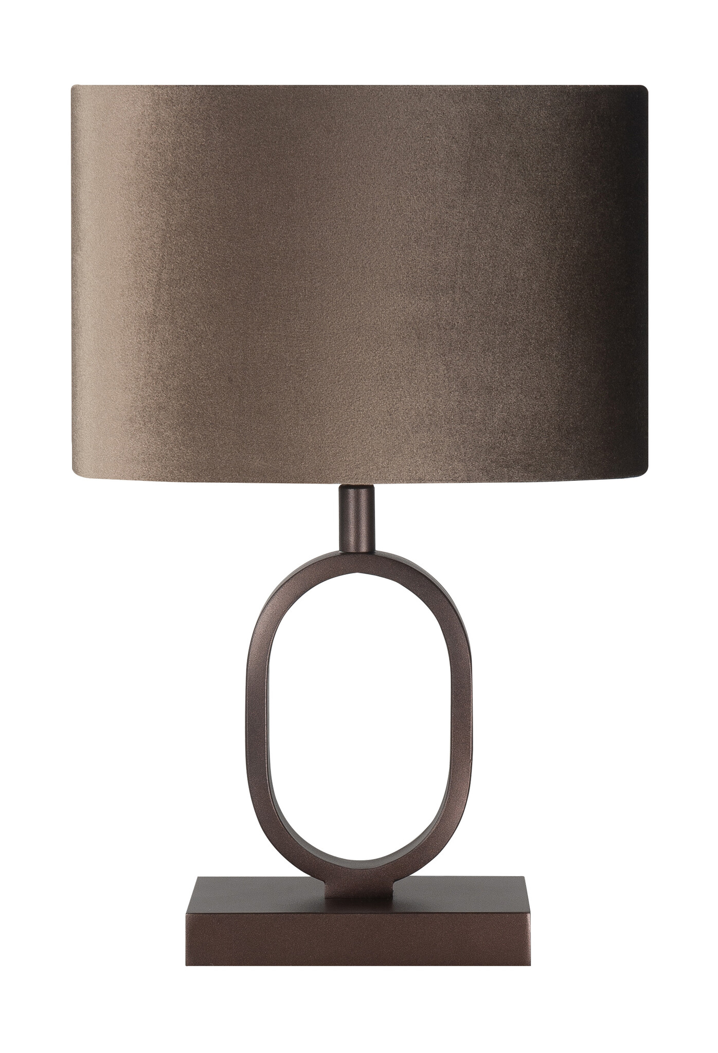 Bronzen, creme, koffie of zwarte tafellamp Verona inclusief een ovale velvet kap van 35 cm. In winkel te zien. Lees meer