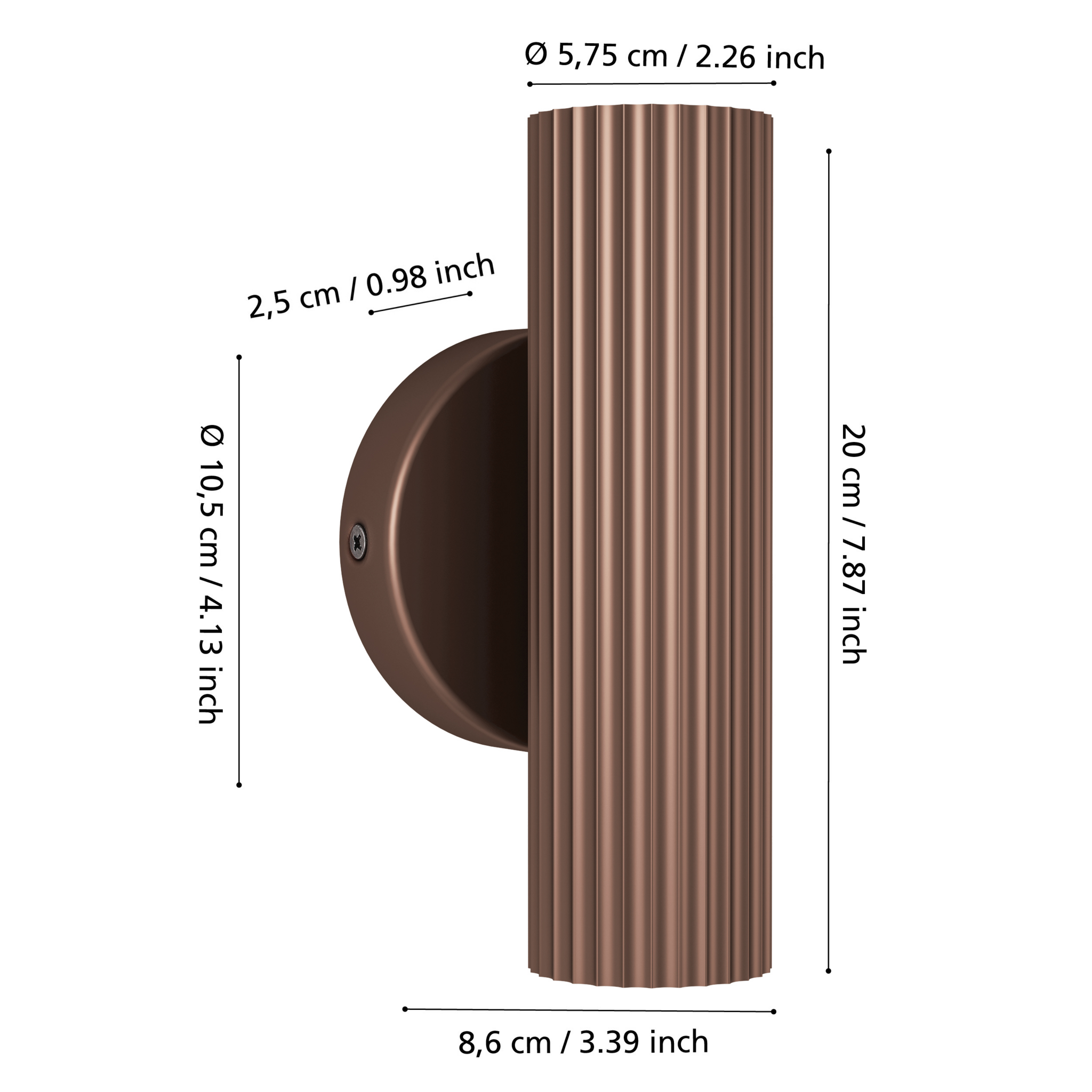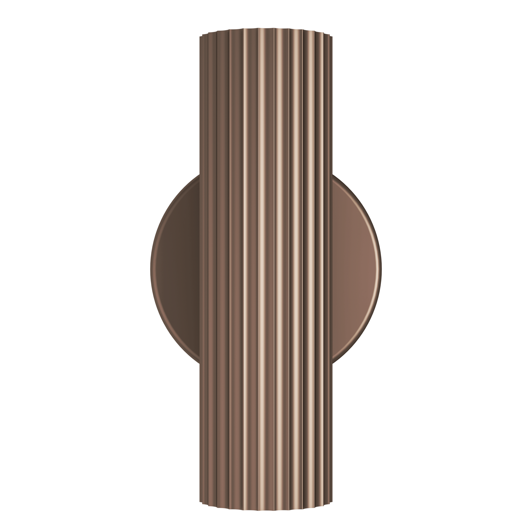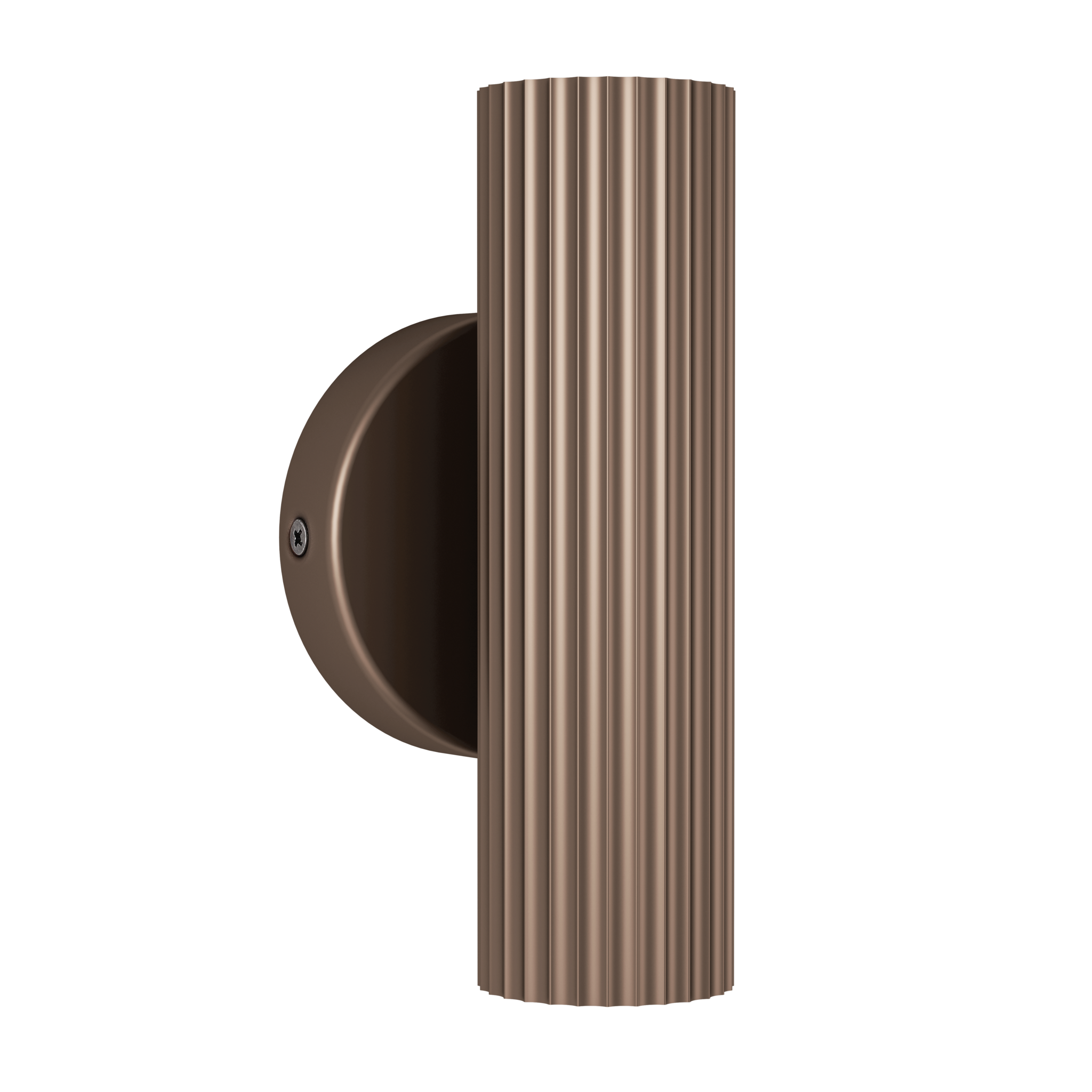 Geef je interieur een warme en moderne uitstraling met deze elegante bronzen wandlamp Portillo. Het slanke cilindervormige ontwerp met subtiele ribbelstructuur zorgt voor een luxe en tijdloze look die perfect past in zowel moderne als klassieke interieurs. Dankzij de open boven- en onderzijde creëert deze lamp een prachtig lichtspel op de muur. Ideaal voor het verlichten van een hal, woonkamer, slaapkamer of zelfs een overdekte buitenruimte. Geschikt voor 2x GU10 LED lampen( excl.)Modern design met ribbelstructuur, perfect voor hal, woonkamer of slaapkamer, eenvoudig te monteren